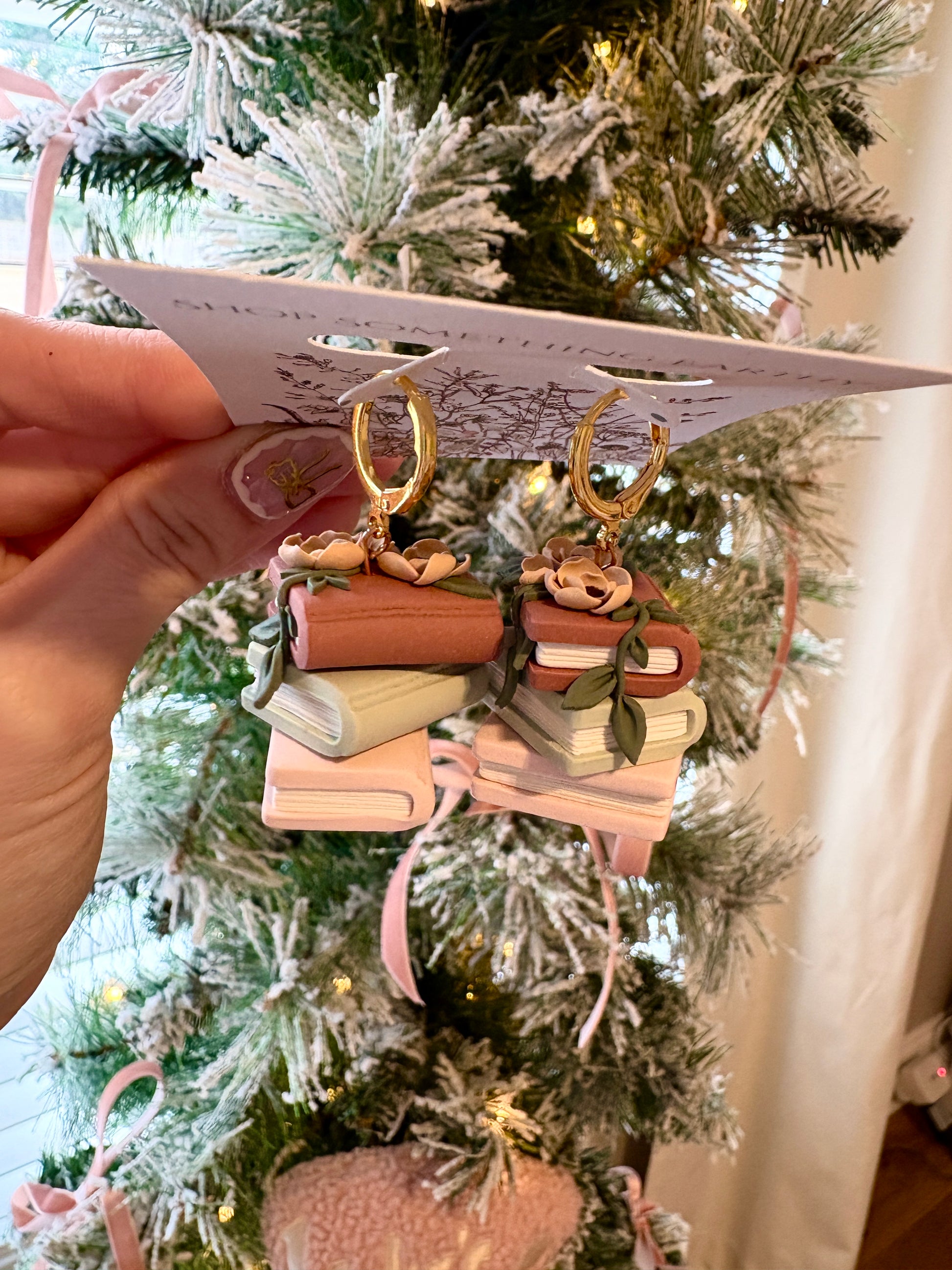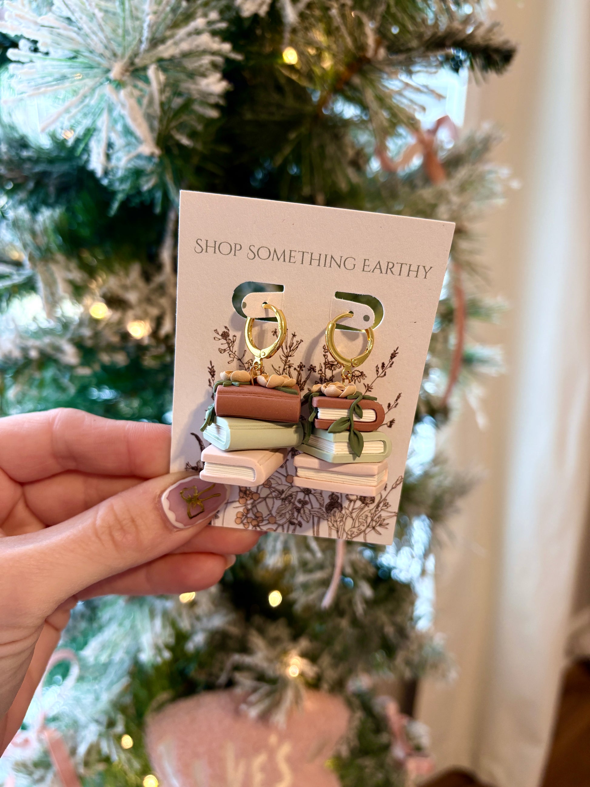 Handmade Clay Bookstack Floral Earrings
